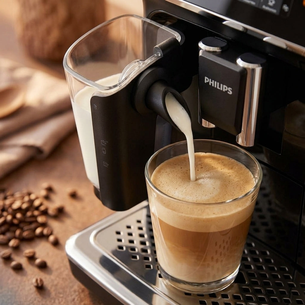 Der Philips Serie 5500 vereint modernste Technologie mit einer Ästhetik, die in jede anspruchsvolle Küche passt. Genießen Sie Perfektion auf Knopfdruck.